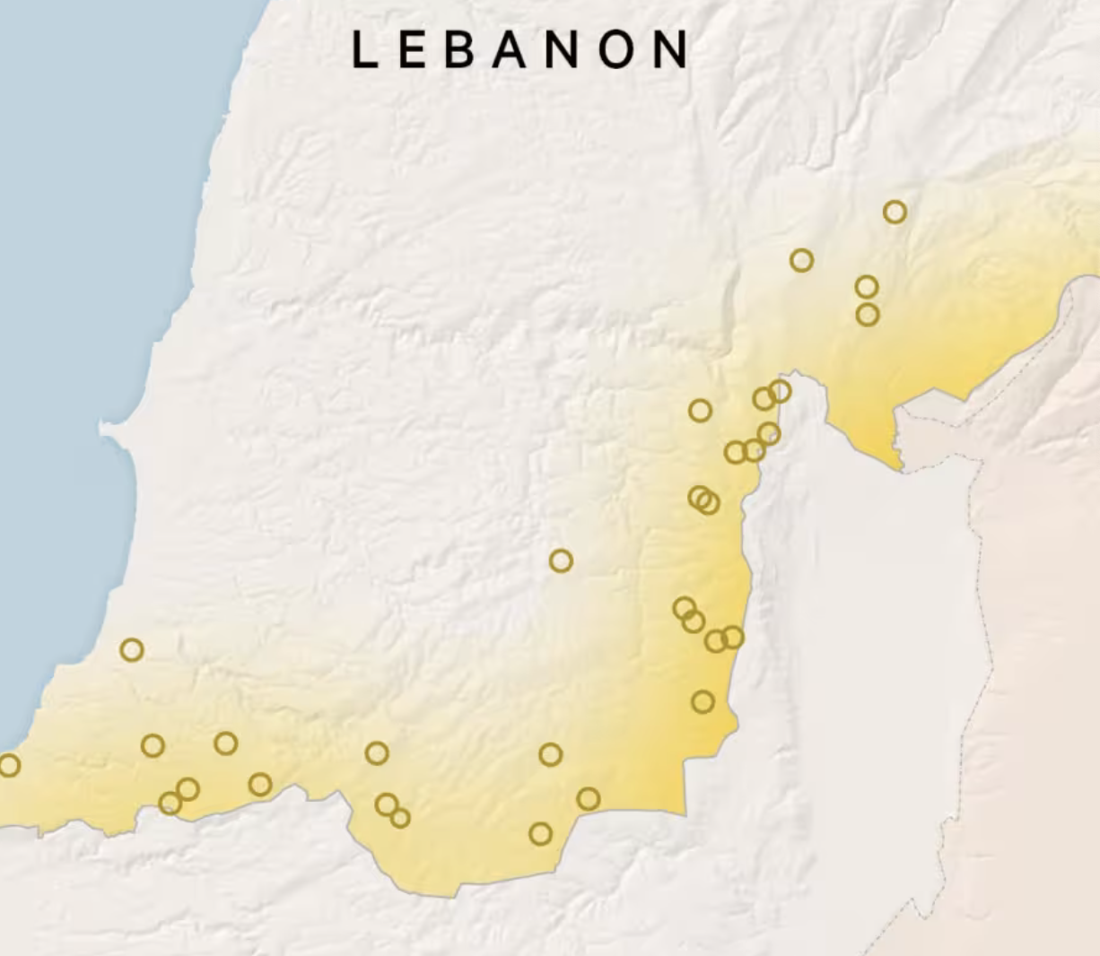 The assassination, timed after multiple unsuccessful attempts to locate the hostages of August 7 or protect its victims from attack, was based on tracking the senior chain of command of attacks on Israeli citizens, as if dropping at least sixty bunker buster bombs equipped with precision guidance systems–bunker-busters able to penetrate deep underground and flatten built structures–killing Nasrallah and much Hezbollah elite was a just strike. Nasrallah had been long targeted by Israeli forces, after being tracked by radioactive material placed on his palm in a friendly handshake, ageolocation of a man long underground was able to offer inside intelligence. Ten days after a spate of terrifying explosion of thousands of pagers booby trapped with explosives across Lebanon in the hands of Hezbollah commanders on September 17, and walkie-talkies on the following day, had compelled a meeting of commanders, the strike in Beirut’s suburbs revealed terrifying vulnerability of once-secure borders. The border treaties suddenly destabilized with the jackpot of killing believed the senior chain of command planning “terrorist activities against the citizens of Israel” as if to legalize the strike, by preemptively eroding the borders of a zone of conflict across Lebanon.