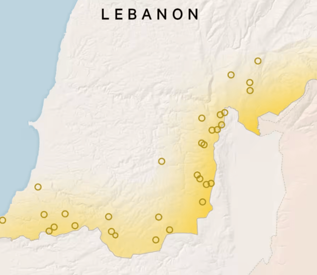 The assassination, timed after multiple unsuccessful attempts to locate the hostages of August 7 or protect its victims from attack, was based on tracking the senior chain of command of attacks on Israeli citizens, as if dropping at least sixty bunker buster bombs equipped with precision guidance systems–bunker-busters able to penetrate deep underground and flatten built structures–killing Nasrallah and much Hezbollah elite was a just strike. Nasrallah had been long targeted by Israeli forces, after being tracked by radioactive material placed on his palm in a friendly handshake, ageolocation of a man long underground was able to offer inside intelligence. Ten days after a spate of terrifying explosion of thousands of pagers booby trapped with explosives across Lebanon in the hands of Hezbollah commanders on September 17, and walkie-talkies on the following day, had compelled a meeting of commanders, the strike in Beirut’s suburbs revealed terrifying vulnerability of once-secure borders. The border treaties suddenly destabilized with the jackpot of killing believed the senior chain of command planning “terrorist activities against the citizens of Israel” as if to legalize the strike, by preemptively eroding the borders of a zone of conflict across Lebanon.