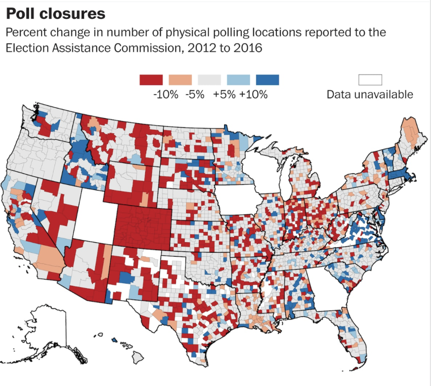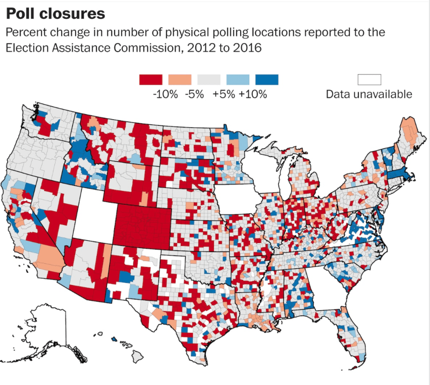 Polling Place Closures, 2012-2016, Washington Post based on Election Administration and Voting Surveys