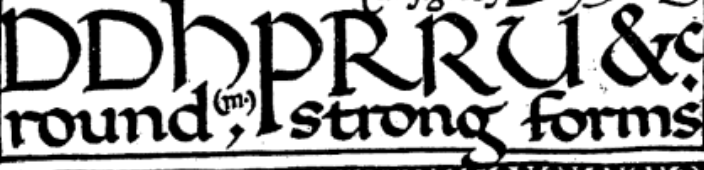 –for the expedience of adjusting writing to th content of the map, intimately associating text and page in a readable surface that tied lettering to principles of design emulating calligraphic precepts following “correct forms of the eleventh century” that recuperated the script lombardic, uncials and half uncials of which Tolkien was so fond, in place of abstract standards of gridded space, preserving the “best pen-forms” as “arch-types” that belied their presence on a printed page as distinctively “pen-made letters” that recuperated the marriage of craft and style in a scriptorium.