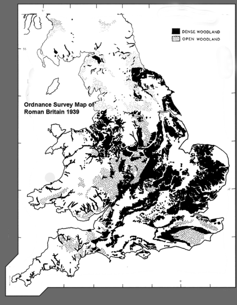 Densely Forested Woodlands and Open Woodland in OS Map of Roman Britain (1939)