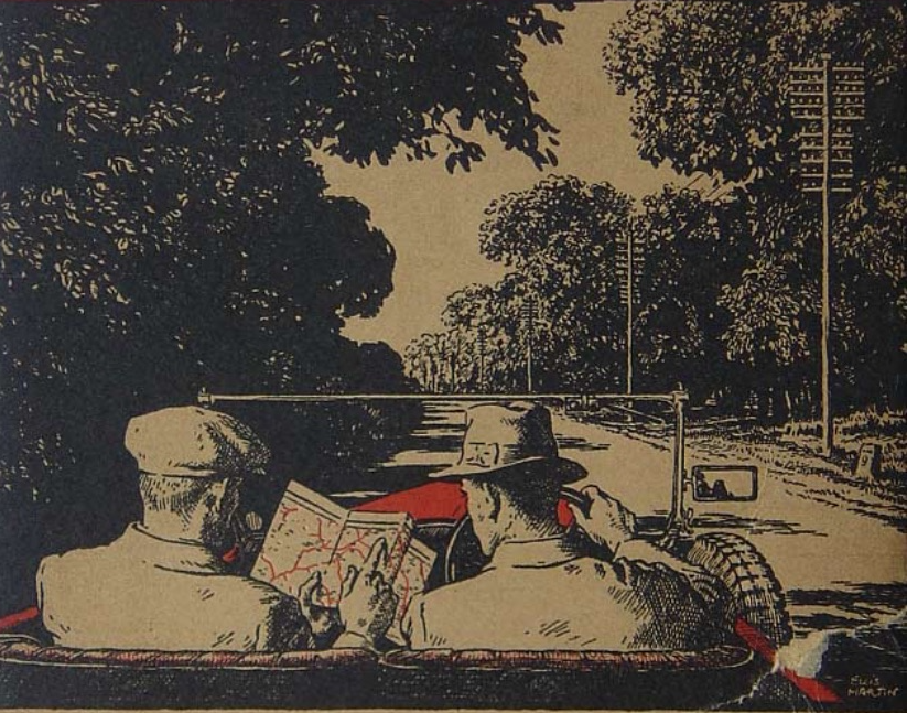 Perhaps nothing more than the image of two gents consulting a map, pondering the alternative roadways by which to traverse the countryside, so popular in the 1930s, created a model of judging distances that lacked any integrated sensory contact with the external world, and a new relation to nature. Lewis worried subtraction of ambient sound in automative transport might leave children deprived, bereft of the sensory contact with a natural world. If he only expressed his concern by terse apprehension, bemoaning the inevitability of a diminished appreciation of the “value of distance” its impact on children’s lives existed on moral grounds.