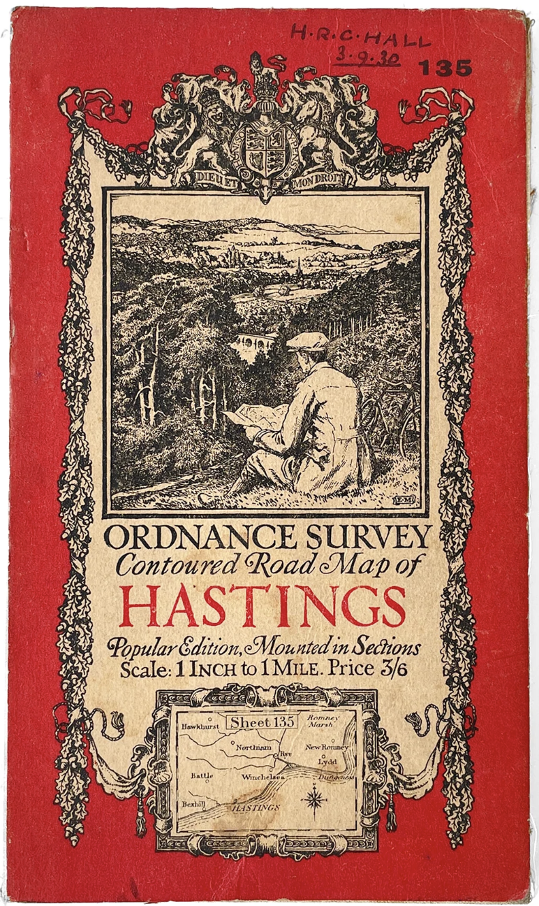 In contrast to the Ordnance Survey maps for military use, the maps of an inch to a mile designed for hikers, motorists, and bicyclists, as well as hikers, rather foregrounded grades of motor roads, reflecting the need for inexpensive editions for a large audience of driving maps. Unlike the map covers Ellis Martin, a draftsman for magazines, had designed in the postwar period, that preserve imagined uses of maps that had encompassing audiences of, say, cyclists, hikers, beside motorists–