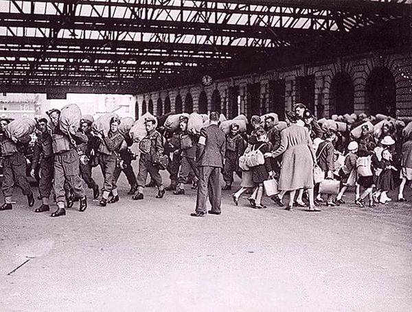 Girls at Paddington Station Departing London, 1939