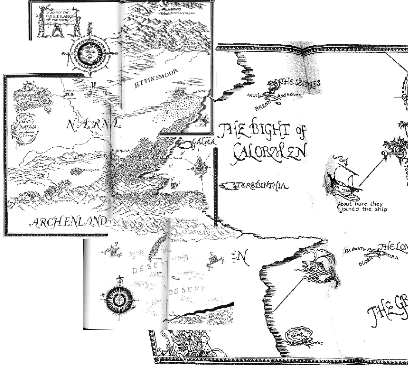 Narnia Maps by Pauline Baynes, assembled from the Endpapers of Volumes in Chronicles of Narnia, 1950-1956