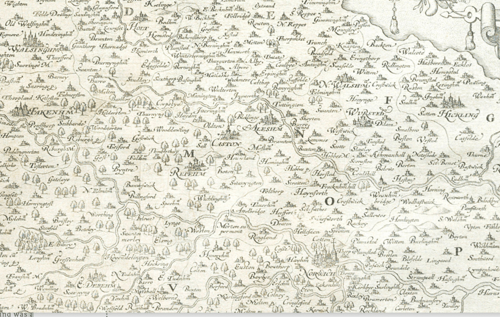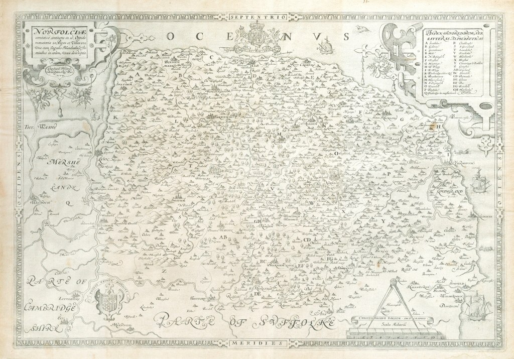 County of Norfolk by Christopher Saxton, c. 1574. Reprint of 1641