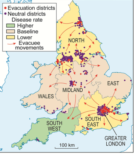 1. The mass-movement transfer of children out of cities September, 1939 to 1945 was a backdrop for the creation of fantasy worlds of a far richer sort, less tied to railways, speeding past countrysides, with gas mask boxes and without their parents, the largest migration in British history,–and definitely in the twentieth century, that sent over 1.5 million children to uncertain destinations, and along relatively uncertain maps. Children living in designated “Evacuation Areas” like Greater London, Birmingham, Bristol, Glasgow, and were transported by Operation Pied Piper to billets in more rural areas as Whales, East Anglia, or Kent–if they were not conscripted to work in mines for national service after 1940. But the entrancing maps that Tolkien drafted of the Shire, and later sketched of the greater canvas of Middle Earth, offered alternative modes of spatial literacy whose geography would have been intensely appealing–if not therapeutic–for the billeted children.