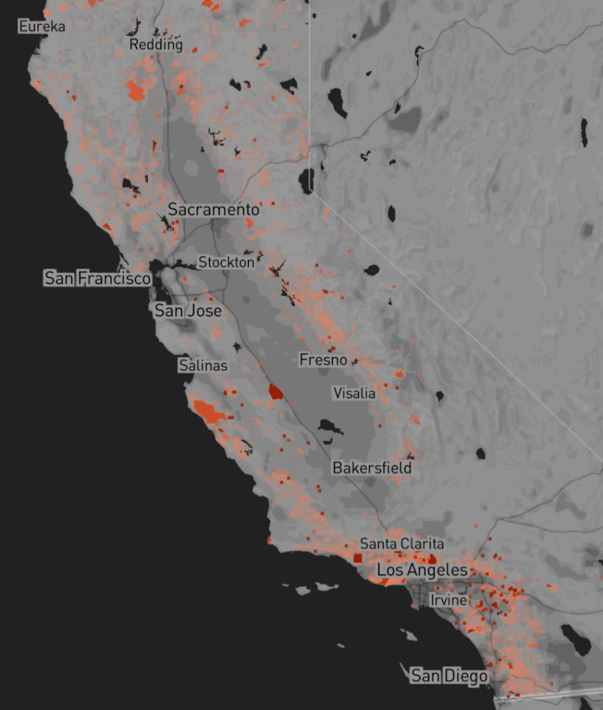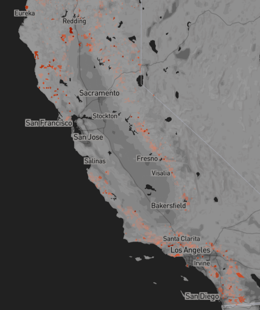 Will the Franklin fire and the fires from San Luis Obispo to Indio be a tipping for insuring houses in fire zones? Sales of homes with stunning views that FAIR enabled artificially induced promises of reduced risk in the form of low premiums from the San Gabriel Mountains to Malibu, offering insurance to residences even as they were periodically facing threats of destruction that would warrant fears of building, in a false economy of abundance. But the scale of the fires are difficult to map–57,673 acres already burned, 16,255 structures destroyed, and twenty nine confirmed fatalities, and $186.6 billion of property at risk in Los Angeles, and $112.8 billion in Riverside. The news maps used on television could not but see this as a dark future at best, colored in the charcoal grey that spread across the Southern California skies and fell as flakes into swimming pools. The urgent petition for a rate hike of 22% on the heels of a crisis in insurance markets that follows swiftly from climate crises–as homeowners who lost their housing face questions of to rebuild or not to rebuild–as existential dilemmas in a state State Farm already ceased issuing new policies–and already raised homeowners’ rates by 20% in 2024, before the recent spate of fires in the south.