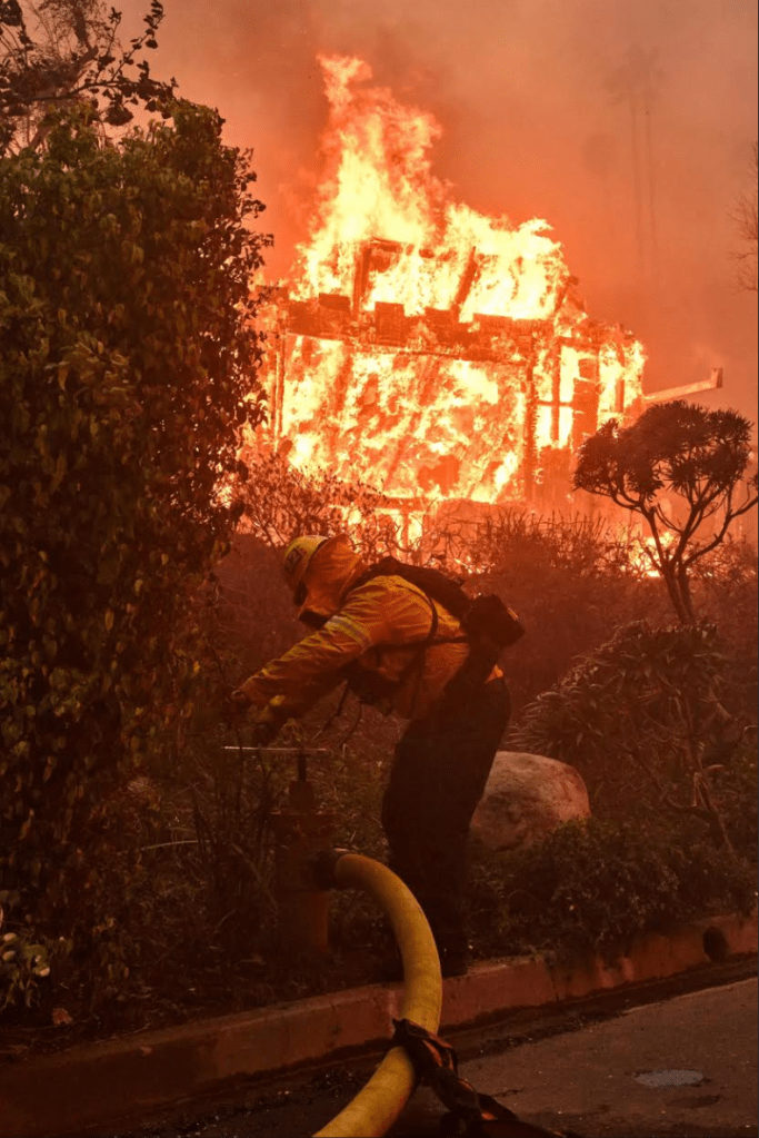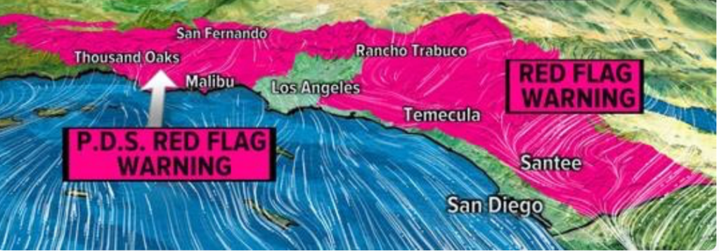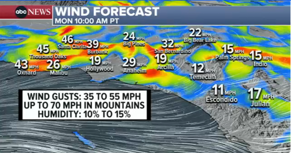 The extraordinarily strong Santa Ana winds that whipped up the flames of fires of up to forty and sixty-five miles per hour–over the speed limit!–that fanned the hills were pointed to for the inferno of the “particularly dangerous situation” in mid-January 13, as urged warnings were issued about infernos that had caused $250-275 billion in damages to property and were not contained, as gusts of wind grew from thirty-five miles per hour to seventy miles per hour, carrying flames and embers across a dried out landscape that indeed lacked water, and where fire fighters had no water in the ground, as they were forced to make heroic fire-drops–and we depended on them to contain the increasingly fanned flames, in ways hard to separate from the heightened levels of fire risk.