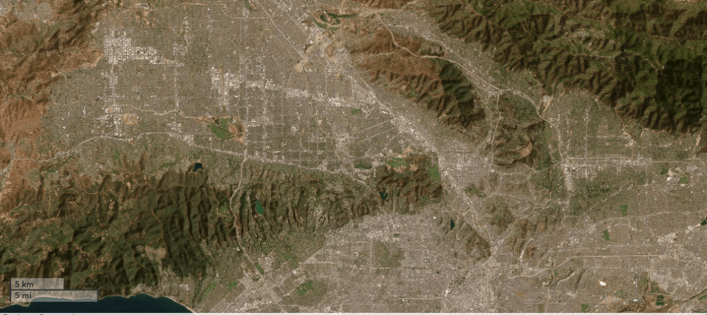 That change might well come by slashing the Department of Education and its ability to fund school districts, and end funds for fire mitigation. We might do worse than to remove our geography of fire from low rainfall, and consider new means of water storage. But preserving the vanity of what Mike Davis called “fireball suburbs” that is more prosaically mapped as the Woodland-Urban Interface, seeking to preserve a beautiful space for those who can afford high premiums to face heightened fire risk. While the recent Pasadena and Altadena fires are best mapped against the dryness of the soil in Southern California terrain that faced accelerated howling of Santa Ana winds, transforming aridity across much of the newly abundant chaparral, scrub and grasses into so much kindling for fires, the flammable landscape Angelino Davis famously traced to the entrance of new sources of ignition into the Malibu landscape in the 1928 opening of the Pacific Coast Highway to coast views created a new outpost of Hollywood stars along the views of beachfront mansions–indeed, a new sense of property foreign to the region–risked being consumed by “wildfire” in October 1929, a year before a five-mile front of towering flames led firefighters combatting them to fear the impossible containment might lead them to spread to densely inhabited urban areas.