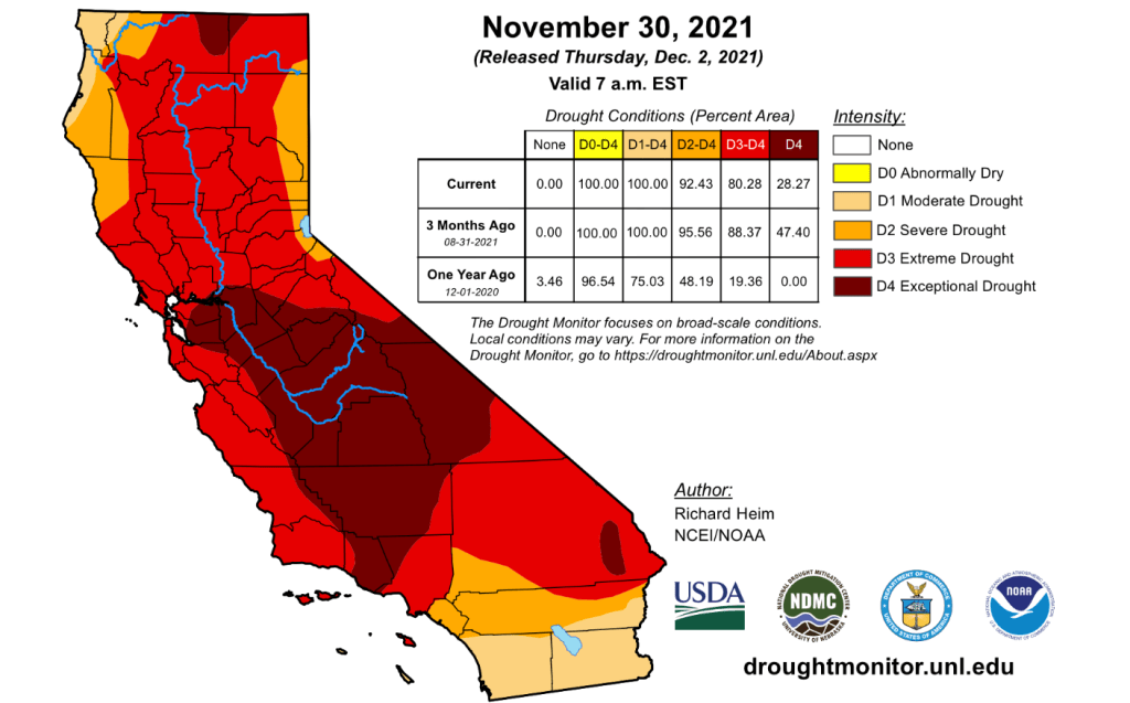 Increasingly determined to use public position for private gain, we have seen ungrounded accusations of mismanagement in the face of the growing risks of the effects of global warming and climate and environment blithely ignored, shifting blame to environmental policies or hiring practices. To do so only distracts our attention from growing environmental risks in an era not only of temperature rise, longstanding drought, and a demand to create agricultural productivity by irrigation. For if rising drought in western states–particularly California, mapped below by from data of Trump’s first term in office as a landscape he should have know well, reveal risks of extreme drought across the entire state.