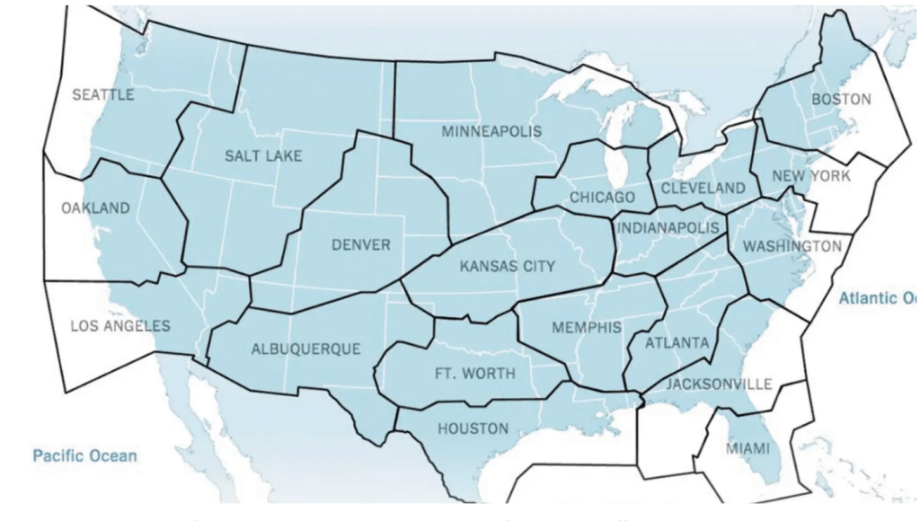 For just thirty minutes before any airplane’s pilot sets their sights on taking off to their destination, all planes notify the next sector of airspace of an adjoining air traffic control tower, to ensure that its flight path will not encounter problems as it approaches a new his airspace or needs to be redirected along an alternate heading or altitude as it plots its flight across the country–moving, as this flight did from Kansas City to Washington. Only after this change is made will the incoming controller accept the airplane into the network whose operation has been overseen by the Dept. of Commerce in July 1936, in the midst of the Depression, but by now expanded to“air traffic control” sectors on which we depend for controllers for safe travels, in order to ensure safe travels.