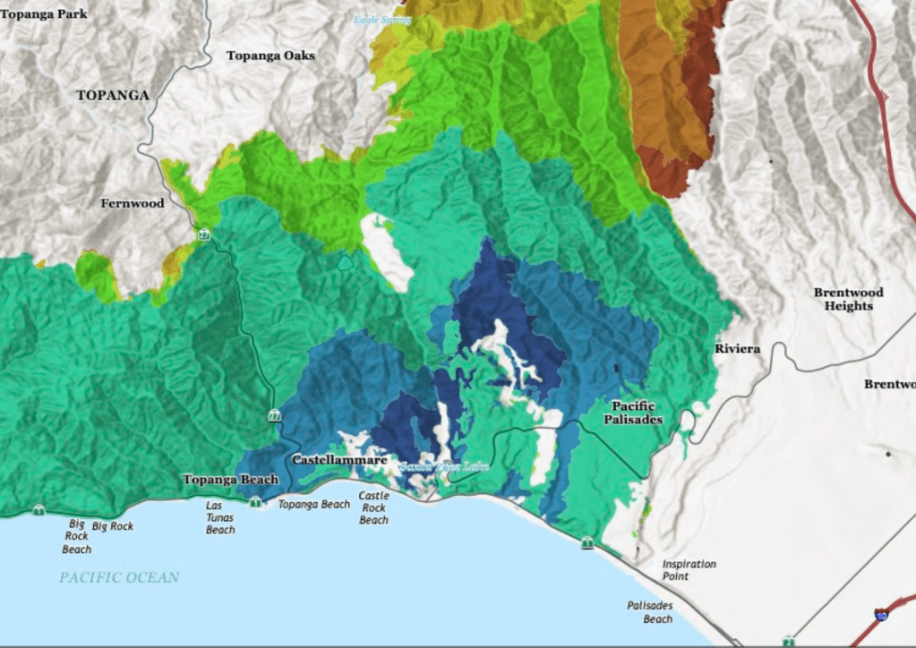 For all the exceptional conditions global warming created that led the fire to spread at such high speed through the desiccated brush in Malibu, the Pacific Palisades, and Altadena erasing a bucolic landscape in a matter of hours, the intersection of risk with insurance supported a rather careless regime of rebuilding without adequate reserves of water. There were no requirements to create water storage underground in Malibu,–even if Los Angeles County Supervisor Wright realized as much back in 1930, as fire lines collapsed before rapidly burning fifty-year-old chaparral on Los Angeles’ city limits, after Malibu was evacuated, that should “fire raging in the Malibu district get closer, our whole city might go,” as if suddenly sensing the terrible fragility of the bargain of its built landscape before an all too real apocalypse.