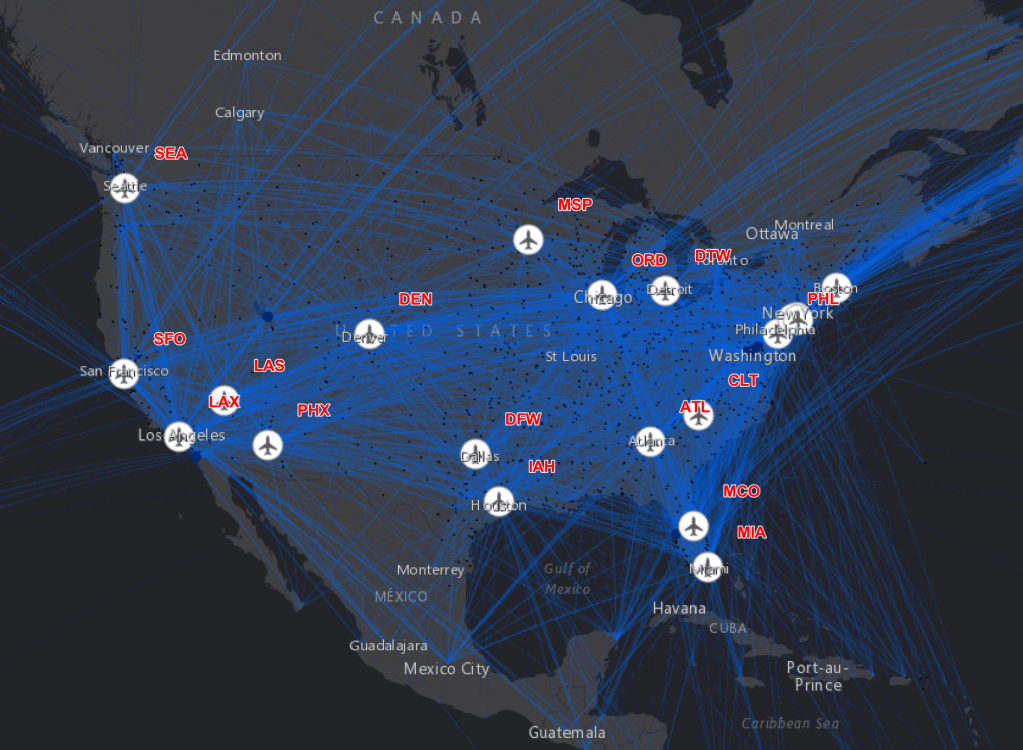 The towers studded across the nation, which are in control of all flight paths at distances from five to forty miles at the densest sites of air traffic, control routing and altitude over immense swaths of national air space, mandating the point at which any aircraft can clears 18,000 feet, when movement is permitted in the cabin, and more. If New York’s control tower covered a sixth of all global flights in 2015, the dispersive governance of the skies manages the scheduling and routing of air traffic of increasing density we never observe from the ground, filtering routing and scheduling decisions through an extended network and routing system, as the hands of local controllers using automated flight routing systems, but control final routing and scheduling from quite dispersed local hubs, within twenty-one united “states” of airspace of disproportionate air traffic.
