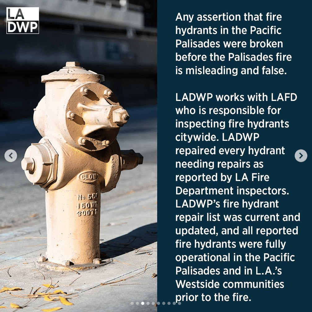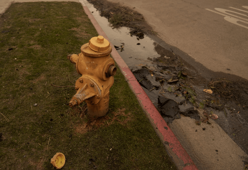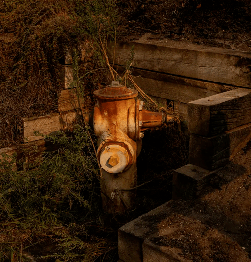 The ghostly form of burnt iron hydrants have become a haunting of the Palisades, a memento mori of modernity and even a haunting of the nation. The skyrocketing demand for private hydrants across Los Angeles seems to mark a major retreat from public utilities, as the hydrants running dry became a spectacle of spectacular failure, rather than a wake-up call. Streamed on media, the rusty hydrant became an emblem of infrastructural failure, and “absolute mismanagement by the city” as if it were a failure of governance that hinted at the failure of public protection. Local storage in tanks had been drained by heavy use in the uphill areas, however, as pressure for long-term usage had decreased so dramatically to make the preposterous charge that local authorities had denied needed water flow by failing to priorities local communities. But the image of the hydrant that ran dry became an emblem of what was wrong in America, the stationary hydrant enduring flames an icon of what happens a state run by a Democratic governor and with a Democratic mayor.