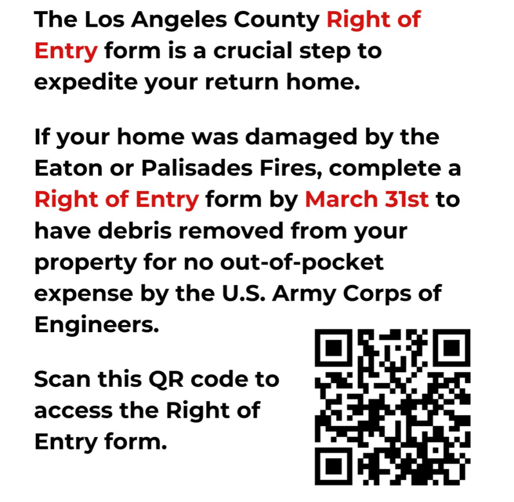Locals worried about the danger of rekindling of fires that had retreated to seats in trunks or trees’ root systems, believed extinguished, but had only reignited as they were fanned alive by high Santa Ana winds, leaving firemen unable to stop their destructive spread. There was an online issuance of a “Right of Entry” form complete with QR code that could be scanned as a “crucial step to expedite your return home,” but no sense of a return home, or a return to safety was in sight.