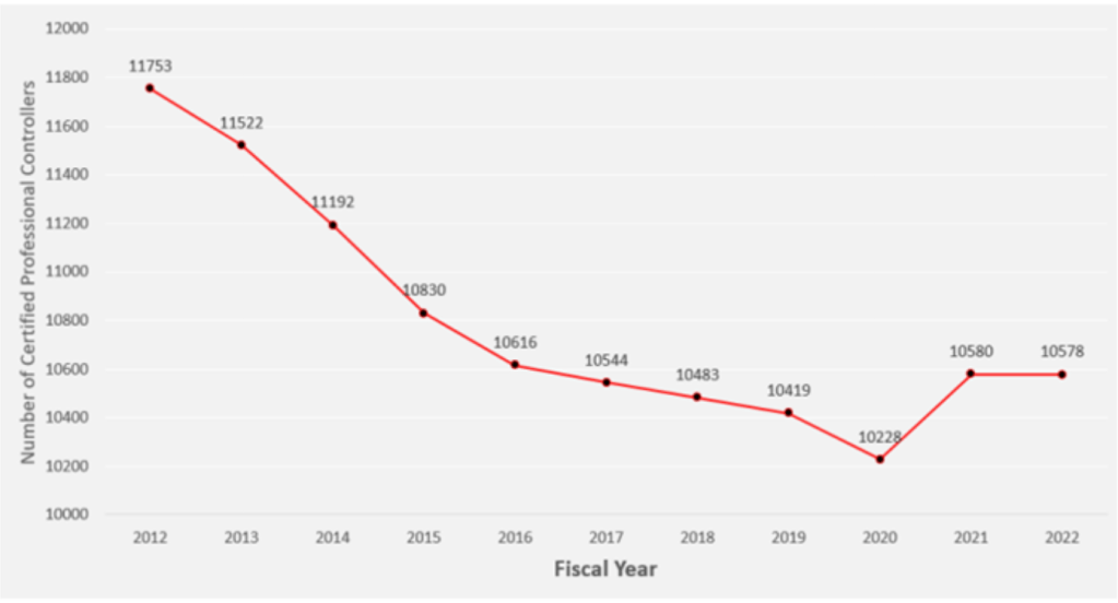 The crisis of staffing of certified controllers became a new normal for decades, as the density of airplane routes was poised to escalate quite dramatically, air traffic controllers loosing a union with teeth, and many staffed buy air traffic controllers in training in a job that is plagued by labor shortages as workflow is increasingly challenging to map–in ways that poses a serious safety risk. For the sever shortages of staffing of Air Towers by professional controllers has quite precipitously declined since 2012, and even has not recovered since the pandemic–per FAA public data–long before we were two thousand controllers below the goal that the FAA set with controllers of 9,000–a number quite lower than the certified controllers we relied upon for landings and air safety.