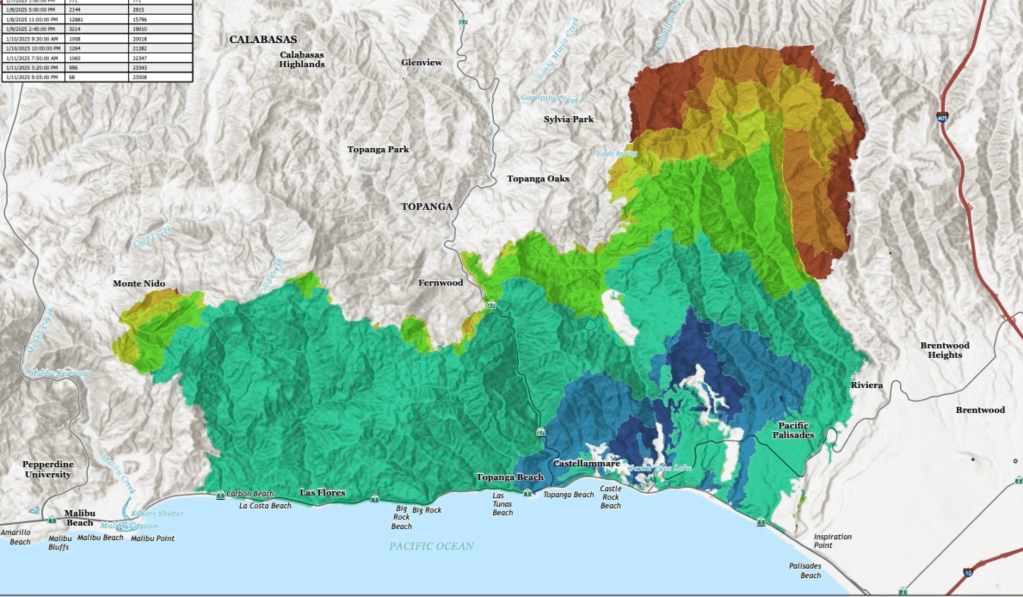 Fire Progression in Palisades Incident/January 7-January 11, 2025 (The Lookout)