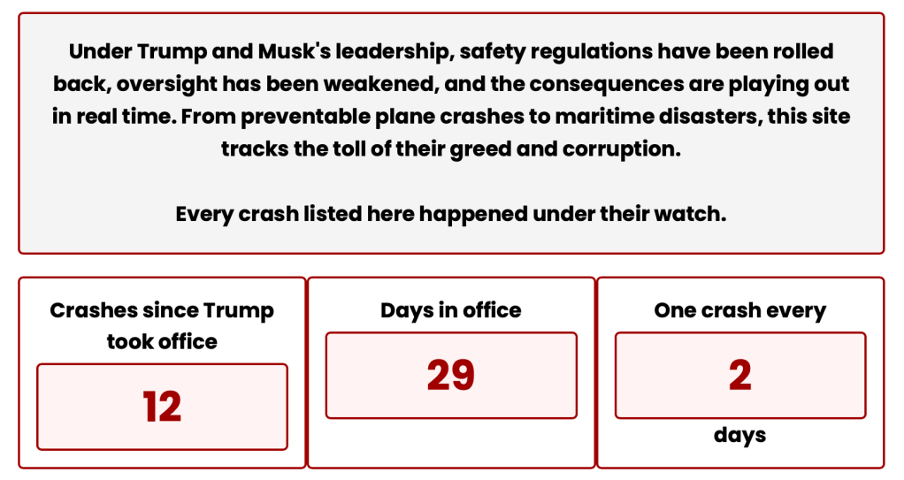America’s declining infrastructure was hardly raised in the last Presidential election. But it was a talking point of Making America Great Again 1.0. There was something truly evil and grotesque in how President Trump attributed the mid-air collision of an airplane descending to Ronald Reagan National Airport Municipal as due to DEI policy, not coordinating flight paths in overtaxed airspace. (The difficulties in the landing has more direct tie to the operation of the nation’s air traffic control tower below recommended levels of staffing,–even if the Reagan Washington National Airport was “not normal for the . . . level of air traffic” at the time of the midair collision over the Potomac. The collision of a Black Hawk helicopter rehearsing a training flight to preserve “continuity of government” to be ready to evacuated political leaders in case of a National Emergency with an incoming flight–became a national emergency. And it was symptomatic of a national emergency far deeper in scale than a single collision. Perhaps the air traffic controller was doing the job of two persons . . . what about the unexplained firing of all members of the Aviation Security Advisory Committee mandated by Congress to oversee safety issues in national airports after the 1988 PanAm 103 bombing over Lockerbie, Scotland? or the vindictive firing of members of the FAA National Defense Program seriously threaten to undermine national safety.