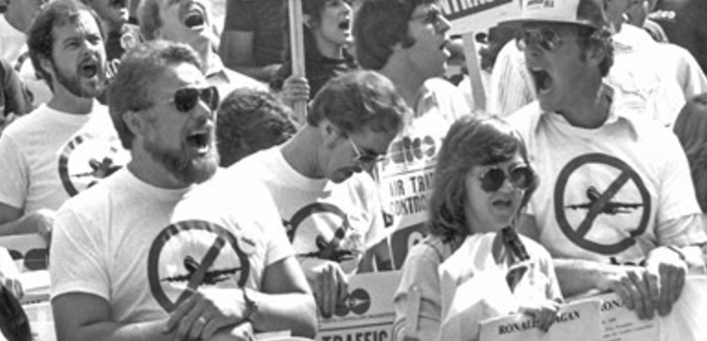 When Ronald Reagan insisted that the strike was not “legal” and that the workers had no ability to negotiate for pay, they took to the streets for a survivable contract, trying to let the nation known that the flights they had presumed available might be stopped–and airplanes grounded–that sent the California Governor turned President into a tizzy, leading him to start training strike-breakers and collectively firing the entire union of a local that had endorsed him in ways that would compromised the profession of air controllers for future years, limiting the attractiveness of a job and ensuring that they would be understaffed and underpaid for decades to come, in ways we have perhaps only very recently begun to receive the bitter harvest of its fruits. The hope of that strike–to ground the planes and empty the skies of air traffic , in an attempt to show the muscles of air controllers angry at their low wages and lack of a viable contract or bargaining terms–