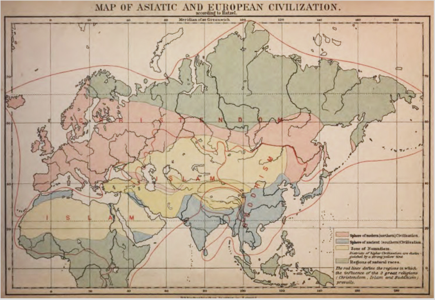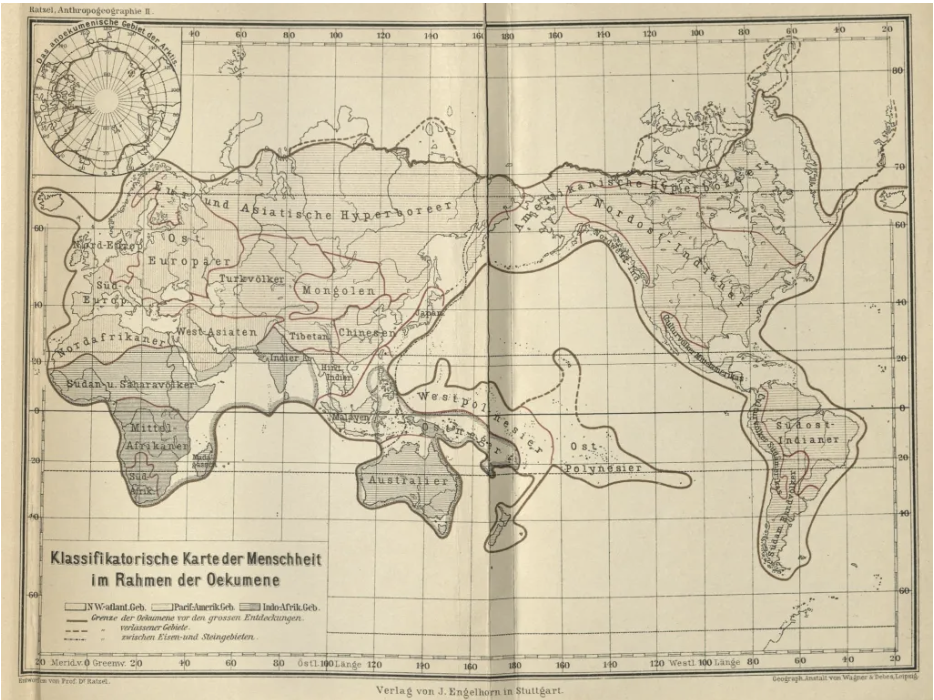 Friedrich Ratzel, Anthropogeographie (Stuttgart, 1899) , v. II: “Classificatory Map of Humanity in Oecumene”