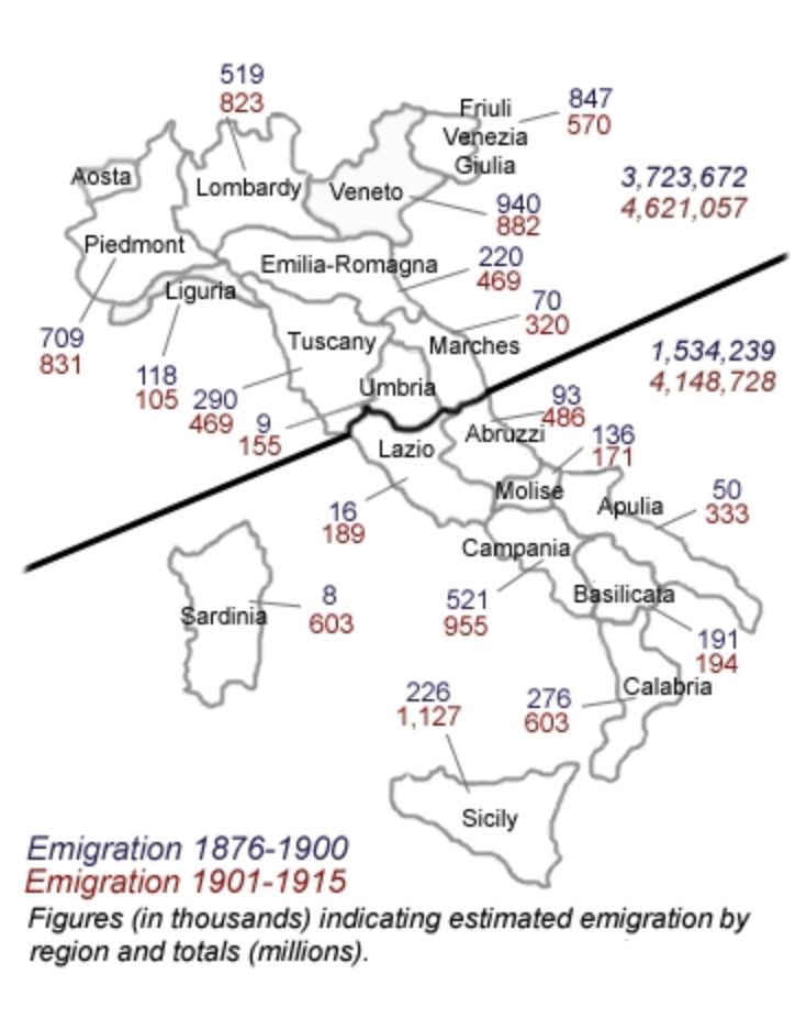 The search for more efficient models of economic behavior reveals Gini not as only a technocrat, or a spokesperson for the fascist state, but an ideologue who believed in a new economic man, even to defend the organized violence of the state, murders of opponents, and arrest and deportation of Jews and undesirables. As a statistical economist, Gini devised tools to map regional economic disparities with alleged transparency, reflecting his growing role in fascist economic thought. But he understood it in terms of economic pathology, of economic “bad actors” as the lack of workers in the south due to economic out-migration had lowered the economic productivity of lower classes, creating an aging society of less economic consumption or demand, and declining energy–as if the economic disparity might be explained by the far greater proportion of emigration from southern provinces, and a huge outflow from Sicily, on the economic health of the body politic by casting the nation in strikingly organicist terms that translated directly from fascist ideology he espoused. The pathological behavior of bad economic actors in the south was not a consequence of growing emigration of the impoverished regions of the south before World War I–
