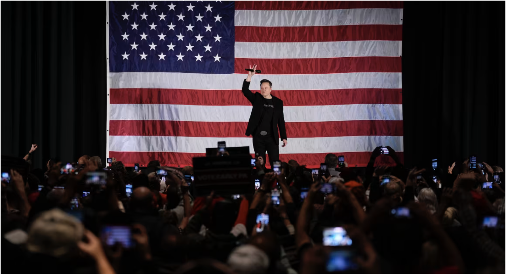 The apparent bargain of its grown seems an exchange for the infusion of $290 million of what was once called “dark money” that Musk has been able to funnel over $118 million to the MAGA movement and GOP candidates by his Super Political Action Committee “America” to exercise his free speech IN there final months of the campaign, Musk emerged beneath a banner of political allegiance we had never seen, pumping so many funds into Trump’s campaign he became Trump’s second largest donor, after Timothy Mellon, the rogue heir to the fortune that has been dedicated to American education and “build[ing] just communities enriched by meaning and guided by critical thinking.” The boondoggle of PAC funds that arrived for the Republican and Democratic candidates was a huge influx of dark money hat opened up the possibility for direct influence in how government took shape–especially from a candidate who vowed to run the government “like a business”–and even parlayed his business experience such as it is to global politics, referring to taking control over Gaza after elected by casting it as “a big real estate site”–rather than sovereign territory. Dark money hit a record high of $1.9 Billion in the 2024 federal races, making it an election unlike any other, almost twice the previous record of $1 Billion in the 2020 election.