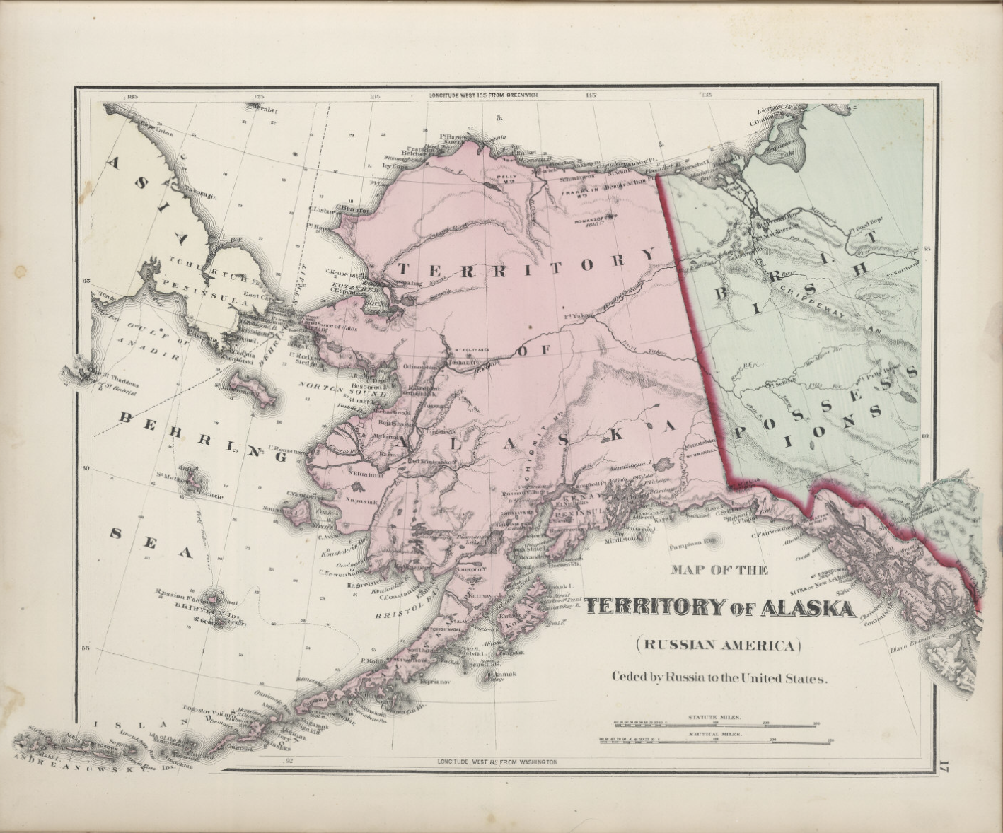 North Western American, showing the territory ceded by Russia to the United States (1867)