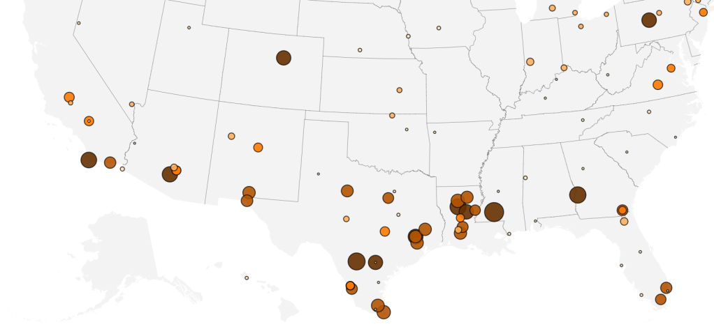 Average Daily Population of Immigrants Detained in Facilities/Data: TRAC; Map: Erin Davis
