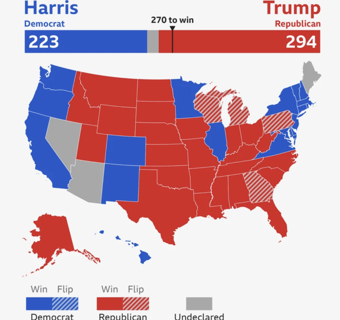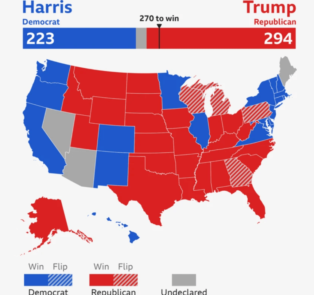 As Musk aimed to dedicate himself to expand his profile in public life, announcing himself as Dark MAGA, he exploited the demand to police and monitor the border by surveilling undocumented. For xenophobia is all but the gift that never ceases to keep giving: in promising tools to reborder the national economy, and preserve the economic entitlement American voters, by the shorthand of the border–and undocumented in America–has become a sacred cow of America’s increasingly illusory economic advantage in a globalized world. In gifting gifting nearly $300,000 to the National Republican Congressional Committee and gifting $1 million to Early Action PAC, a super-PAC dedicated to registering Republicans to vote early, and giving away millions to gain Republican votes in midwestern states, Musk seems to have sought to engineer his inevitability as a fixture in the party that suggest a deep commitment to remaking government by correlating long protected datasets and the AI tools of public governance. Musk used his political capital to persuade Trump to found an “Office of Government Efficiency.” As Musk’s donations invite increased cautions from the Dept. of Justice, he has been able to evade them and wave them away by his growing personal ties to power, in ways Trump may have in the end spooked Donald Trump and his children. But the fateful map had been reengineered with Elon’s help in ways that shocked the nation, pulling four states to the Republican party’s column that few would have imagined would so quickly if narrowly turn red.