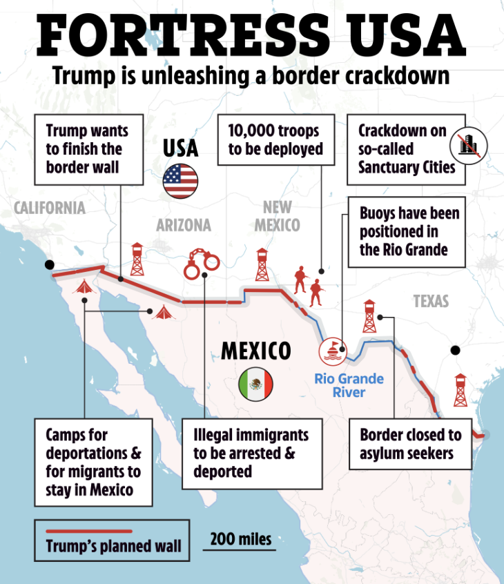 The border wall looms so large to be taken as a basis for mapping America’s place in the world. Border security grew more fear broadly than immigration, tying them to the forces of globalization. While the mission of Immigration and Customs Enforcement was defined since its 2003 foundation as policing “criminal aliens,” using the language of the law as a rhetorical terms to define a mission of deportation, and using a legal system to prosecute and enforce offenders of immigration laws, it has long jailed people whether or not they were charged of a crime, the crime of immigration is increasingly recast as an attack on the nation symptomatic of how globalization has hurt America’s wealth, even as globalization has heightened wealth inequalities across America. The declaration that no “illegal migrant” would enter the nation or have rights to free speech and civil rights of Americans suggested a new demand to “find and remove every terrorist from this country . . . over the opposition of the far left judges, over the opposition of the federal bureaucracy” claimed a mandate “to make this nation safer than ever before.” Was this to be achieved primarily by the forcible extraction and deportation of “invaders” beyond the expanded bounds of the United States?
