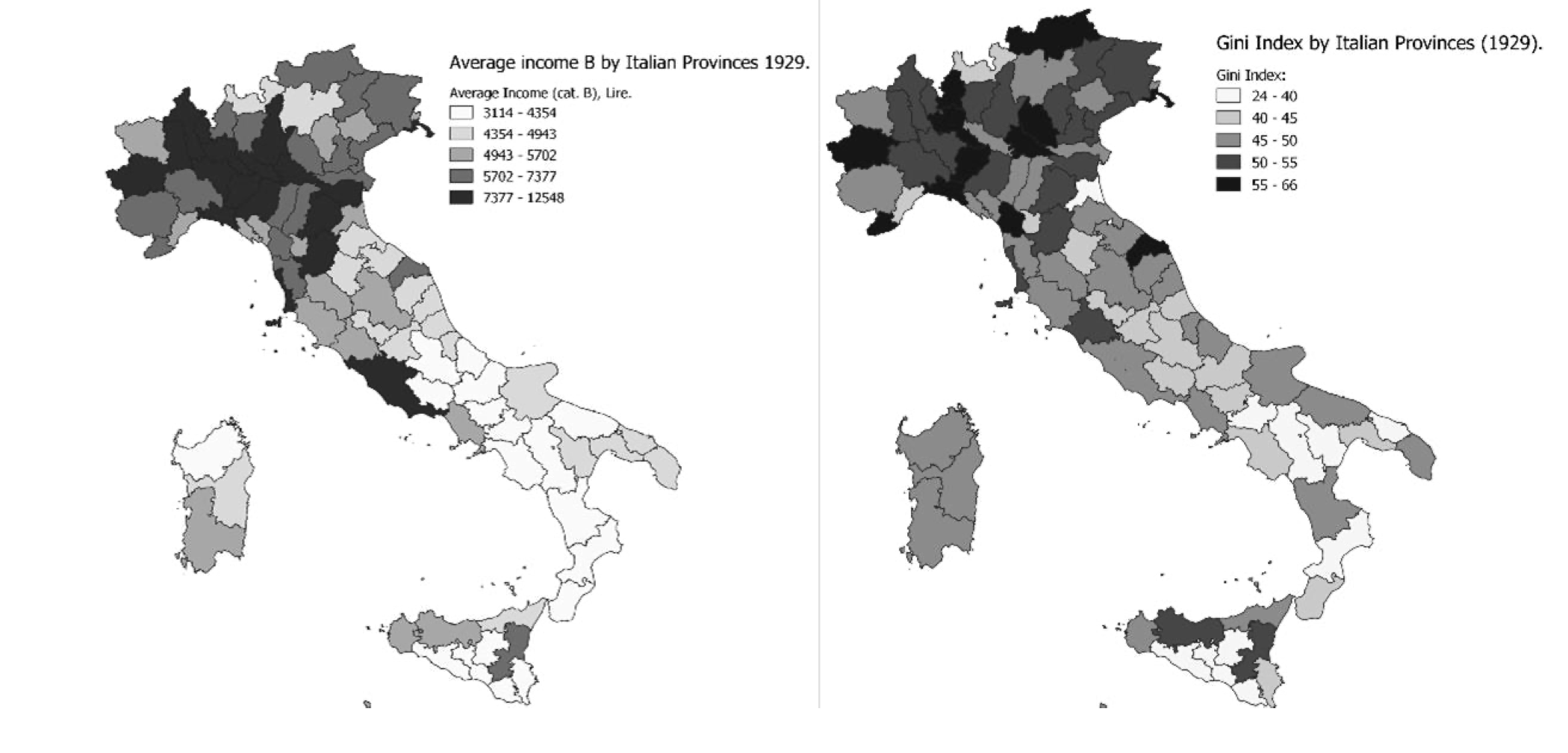 Mean Taxed Income and its Local Concentration in Italian Provinces, circa 1929/Giacomo Gabutti