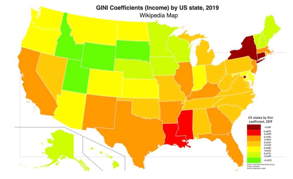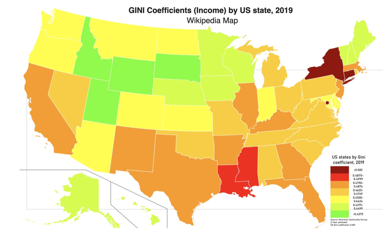 Income Inequality by Gini Coefficients in all Fifty States, 2019/GeoCurrents