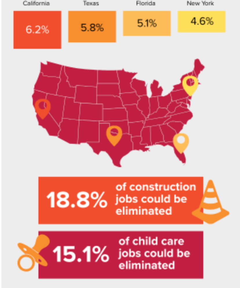 For arrests, detention, deportation and an end to Temporary Protected Status trumpeted by MAGA bullhorns in a nation where one in five workers in the active workforce is an immigrant, the four million estimated deportations will reshape not only the workforce, but work conditions, that will probably see a broad detonation across the nation that will reshape the landscape of employment, to be felt in many states, especially New Jersey, Nevada, California, Texas and Florida, as the below cartogram crafted only this month reveals. The plans for deportation that will curb or end demand for foreign-born labor in America, and end an actually integral part of the labor market, will damage the labor market in ways that will hurt all workers, even as the oversight of labor standards declines in markets across the country–rather than increasing the actual number of American jobs.