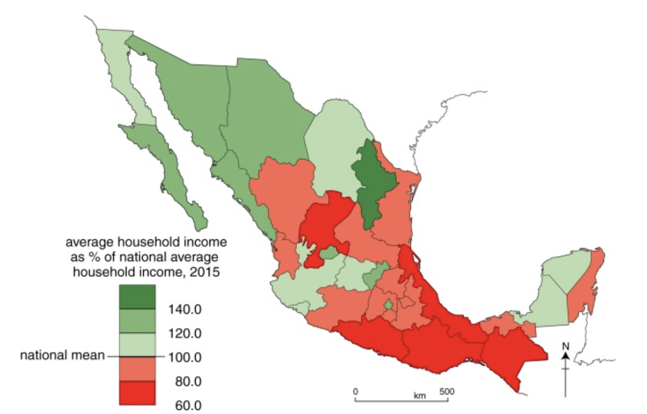 Yet this political genealogy of a global metric and data visualization tool is one we prefer to ignore–if it is a tie that seems increasingly inescapable as a startlingly recognizable synoptic image of the deep dilemmas and hidden contradictions of how capital is distributed in a globalized world, and as we use the Gini’s Index as a basic yardstick to orient ourselves to global equality. We may have once flinched associating tools of economist who rose to eminence as the enabler of a fascist strongman as a basis for understanding the modern world; but Gini’s tools is the compelling register of globalization, able to distill globalization in ways inseparable from our maps of our world in data–and of how Trumpism and MAGA deploy starkly contrasting earnings in Mexico and the United States as a metric able to Make America Great Again.