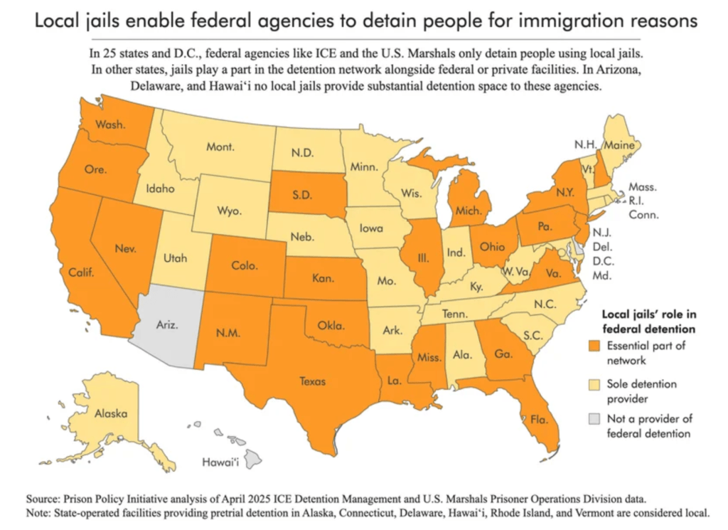 South Africa, to which this blog will return, is of course the sole nation President Trump decided to admit refugees, and celebrate their acceptance in the nation, as he closes all cross-border flow of political and economic refugees from southern hemisphere. The shutting of the border seems designed to defend an illusion of wealth. And the illusion of the greatness of American markets that has led him to propose to impose higher and higher tariffs on global imports in a regressive system that will pass costs onto America consumers of middle and lower incomes indeed suggests the ease he imagines Americans can be duped to being convinced tariffs offer an untapped windfall for America–again imagining the geographic dominance of the nation in such starkly confrontation terms. At the same time, the expansive American penal structure is being tapped to hold the undocumented to reflect their designation as “illegals” who are demanding to be detained for deportation–leading to the early expansion of ICE arrests.
