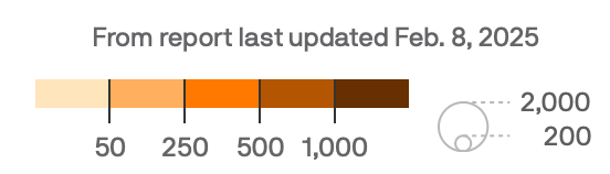 The future of this map has provided historians with an eery sense of reading tea leaves at the start of the Trump Presidency, when few imagined what the scope of the promise to “being dictator on Day One” meant, but the imperial Presidency that has unfolded, if with no constitutional or legal precedents, takes a page from the data-driven models of efficiency that Tesla–and Elon Musk, and his cohort in Silicon Valley–have advanced, a model of efficiency with rich science fiction roots, to be sure, that converts people to numbers and denies the numbers of climate change, for processing fields of information that make sense for markets, and using AI to integrate personal databases to create an alternative model of state rule and sovereignty than we have known for some time–call it TechnoFeudalism if you will. Musk felt so revulsed seeing hacked geodata of Tesla owners as he railed against what he called a map of domestic terrorism in March, 2025, in Trump’s language–he thundered at the transformation of the red T’s to targets, on the social media he claimed a venue of free speech absolutism, shocked at the illegality of inciting popular violence against his brand: “Encouraging destruction of Teslas throughout the country is extreme domestic terrorism!!” [sic]