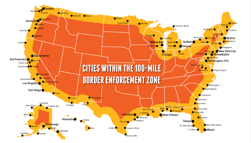 For Trump has also confounded continental security with global security, has served to deputize the new expansion of Customs and Border Patrol and Immigration and Customs Enforcement as the largest policing forces in the nation, tasked with the ability to find and remove every terrorist from this country” from a database integrating geolocation of all defined as undocumented immigrants from a range of long separate criminal and social welfare databases that will serve as a basis to deny them civil liberties. The creation of a National Defense Area alongside the border will militarize on third of the border as a National Defense Zone. Plans for such a “database” based on the profiling of Muslims planed for 2016 would be in violation of constitutional rights, due process and civil rights protections, as well as investigation of individuals or groups based on suspicions of wrongdoing even on the fears of national security threats of terrorism; the plans to “certainly implement” a national database of Muslim immigrants by profiling people of color without oversight or accountability was feared as due process of the fifth amendment and equal protection violations and erode civil liberties, and a database would violate federal privacy laws, even as Trump asserted his “Deportation Force” would “round up” suspects for “mass deportations” across the country within constitutional law, as bulk collection of data from personal communications would infringe on federal privacy laws.