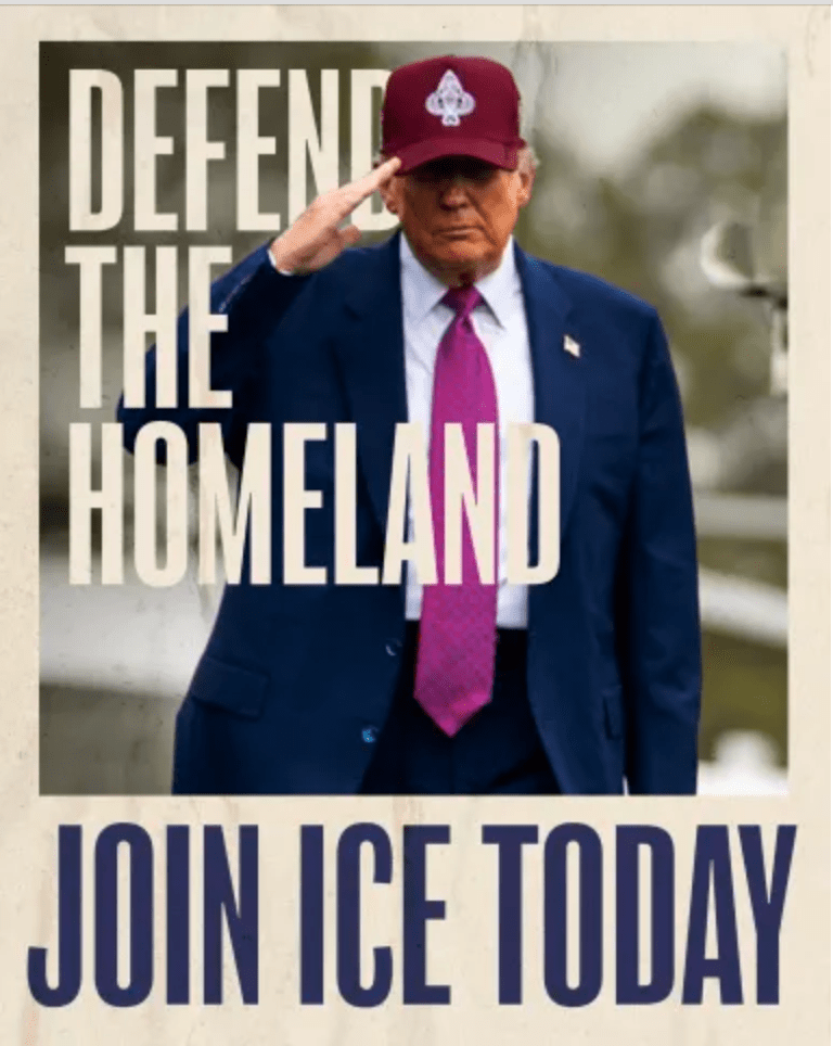 The monies enabled the rush of anti-immigrant ads in “battleground” states, linking “amnesty” and “illegal immigrants” to the Democratic Party, much as had been true in 2016, to provoke voters’ Pavlovian responses. The strategy of the airwaves was since adopted by the Dept. of Homeland Security as a strategy, even exempting the $200 million for anti-immigrant ads from DOGE cuts Homeland Security Secretary Kriti Noem credited as Trump’s idea: Trump demanded Noem thank him “for closing down the border” in the lucrative advertisements broadcasting the ultimatums: “To aid in responding to this emergency, DHS requires an immediate domestic and international campaign designed to direct undocumented to leave immediately.” The sustained campaign is a backdrop normalizing arrests, detentions, and deportations of undocumented internalized by all viewers: the Trump worried any delay in the broadcast “will allow illegal border crossings to continue to rise.”