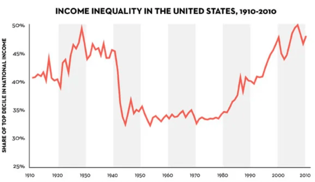 We may be so blinded by the fools’ gold Donald Trump and Elon Musk embody to obscure their roles as a tag team promoting a new governmental paradigm or historical age to not see the startling wealth inequality it inaugurates and seems to normalize and preserve, by emptying out graduated income tax, and placing a premium on the tariffs imposed on other countries. Pronounced cuts in taxes and absence of government oversight of the economy seem inevitably to portend a rising wealth inequality across the nation, as the nation’s laws and social services are hollowed out, and oversight over public lands dramatically shrink. Global income inequality did shrink after World War II; but far more of those benefitting from rising incomes lie outside the United States in past decades. The rise of tariffs that will mean higher prices for consumers offers a regressive taxation policy of which they will bear the brunt, the costs were erased by the overly optimistic promise of security and efficiency of a government that would be run “like a business”–whatever that means, given that government and business are in fact two rather separate, if not always exclusive, realms: government doesn’t control the market, but modulates it and provides it with rules to exist. The semantic trickle-down of how DOGE empties regulatory bodies, as well as regulators, devaluing their expertise and indices of pollution, asserts oversight over the Environmental Protection Agency (EPA), Federal Energy Regulatory Commission, Bureau of Safety and Environmental Enforcement, Bureau of Land Management, and Bureau of Ocean Energy Management, and Army Corps of Engineers–ending the role of expert oversight that is cast as obstructions to government.