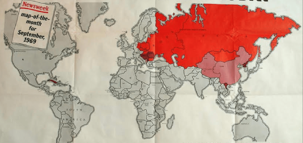 Newsweek famously suggested with greater sophistication to parse “World Communism Today,” charting variations in the “principle varieties of communism” in shades of red, as United States troops returned, suggesting North Vietnam, after the death of Ho Chi Minh, and a decreasing intensity of combat, was less of a clearly Russian or Chinese variety of communism–but a “neutral” communism, as if to clarify it wasn’t destined to undermine the global balance of geopolitical power in an instructive world map of red overlays, in its up-to-date “map-of-the-month”!