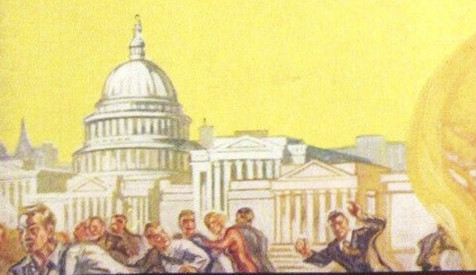 –in an eery image of the disgruntled white male workers that is a seventy six year old image of January 6 riots in the rear window of a panic at a feared change in American economic security, used as the cover of a 1933 issue of a magazine of the political party that adopted the map that is the header to this post.