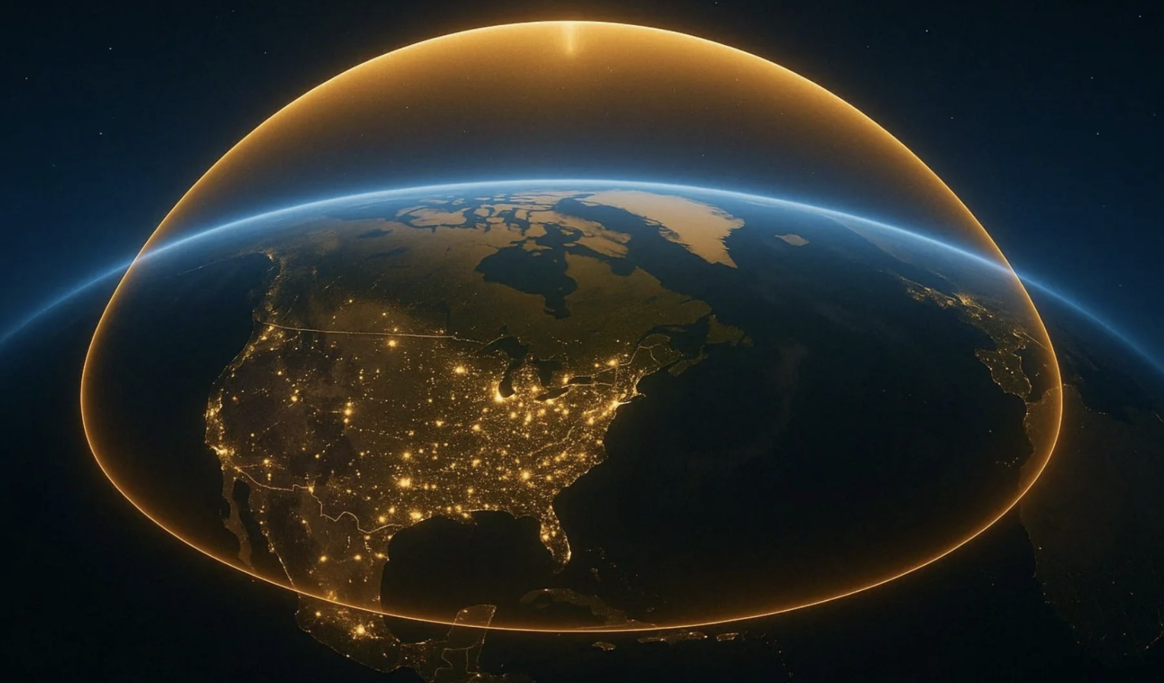 The intercontinental bombast of the most recent project Trump announced of truly mapping global power–the incongruously named Golden Dome is in fact a sort of mirror image that reifies the distances that tariffs have placed between the United States and the world, lest they continue to “rip us off.” As much as a show of force, however, it is masking as a benevolent blanket to perpetuate the investment in an interlinked satellite network hard to defend but able to ask for billions of funding to get off the ground. Rather than offering a show of force, the Golden Dome seems the latest attempt at withdrawing from global influence of the United States that defined the postwar period, and ran through the Cold War straight past its alleged end, and offering coverage to surrounding states as a means of incorporating them in a unified if radically redrawn national sovereignty. ON the drawing board, it is impressive. But the Golden Dome is a pose of power: rather than being as new as it claims, the “shield of the nation” recalls Elon Musk’s intercontinental bombast and engineering bravado, whose career specialized in hybrid projects of futuristic design, but not truly “new”–, its outrageous claims rising to sci-fi challenges of Tesla’s driverless cars, plans to Occupy Mars, or neural interfaces with computers for the human brain, reutilizing technologies to fit together in a web of satellites and radar to “stay ahead of accelerating threats.”