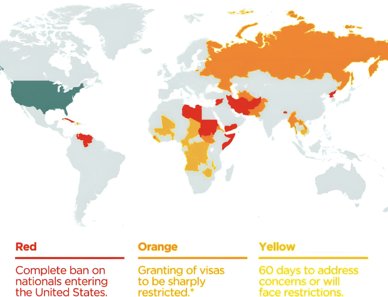 -and threaten to expand the list beyond forty-three countries, including much of the African continent, mostly dispersed across the very sub-Saharan regions he had removed foreign aid.