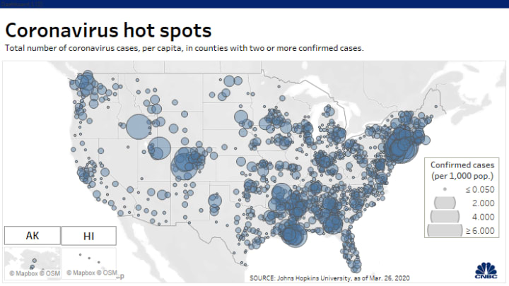 Even if we demanded to map what were the novel coronavirus had “hot-spots” in mid- to late March, as if processing the enormity of the scale we didn’t know how to map, aggregating data without a sense of scale.