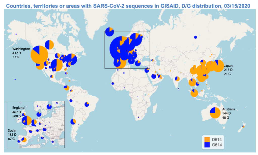The maps of genomic variation traced not only the globalization of the virus, but its shifting character, and perhaps etiology across some thirty variants by late April, that show both the global spread of the virus, and the distinct domination of select strains at certain locations, in way that researchers later theorized the ability to “track” mutations with increasing precision. If researchers in Bologna defined six different variants of coronavirus from almost 50,000 genomes that had been mapped globally in laboratory settings to map variants of the virus whose signatures showed little more variability than strains of the flu in June, variations of signatures seemed a manner to map the speed of coronavirus that had traveled globally from by February 202 to the lungs of the late Franco Orlandi, an eighty-three year old retired truck driver from Nembro, Italy, whose family could not place China on a map when, following diagnostic protocol, attendant physicians in Bergamo asked if Orlandi had, by chance, happen to have traveled to China recently.