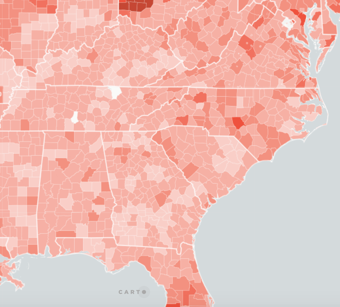Area roughly corresponding to Greater Appalachia/Mapbox/New York Times