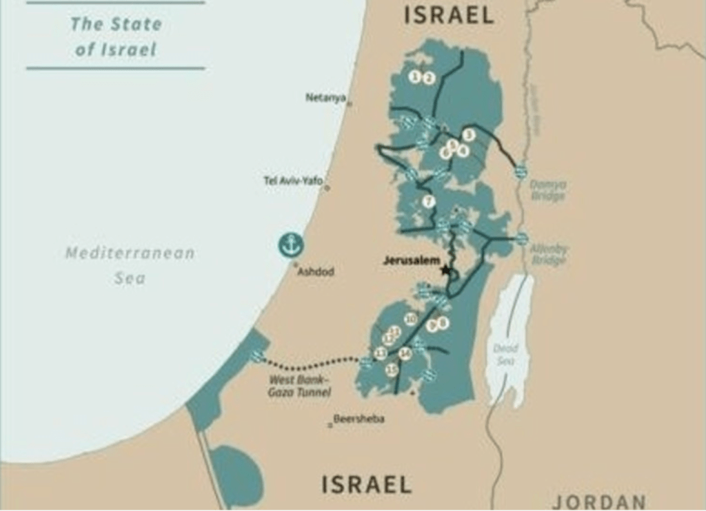 The rather crude maps not based on GPS and drawn on paper napkins that came out of the Trump White House however became a basis for a “deal” in the Middle East gained a tactical role as Trump positioned himself as master of the “art of the deal” able to bring peace to the Middle East, born of a transactional logic of personal negotiations. The improbable prominence of Jared Kushner as alleged architect of a new “peace plan” long elusive to previous American administrations balanced a promised port, access to the River Jordan, and a cut-out boundaries as a viable future for the State of Israel, constraining Palestinians to islands of green. The “Plan,” as it was known, was never taken that seriously, if promoted as a once-in-a-lifetime “Deal of the Century, was drafted with no input from Palestinians, and ignoring all stated desires, but offering several carrots in mistaken hopes to end diplomatic stalemate to restrict Palestinians to a reduced presence in the new State of Israel. If President Trump is best known perhaps for his dictum that a state without clear boundaries is not a state, the Palestinian population would not be in defensible boundaries, or any boundaries, but linked by a set of bridges, tunnels, roads, and islands, without coherence in this “visionary” plan.