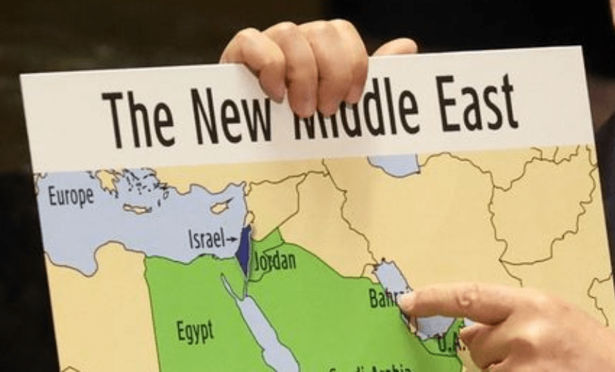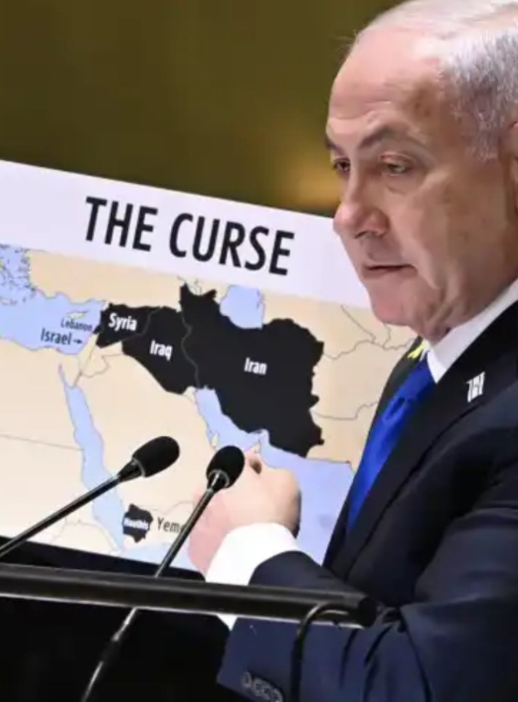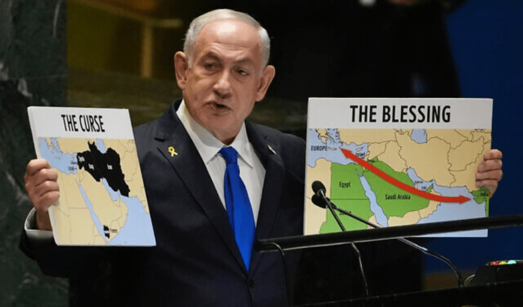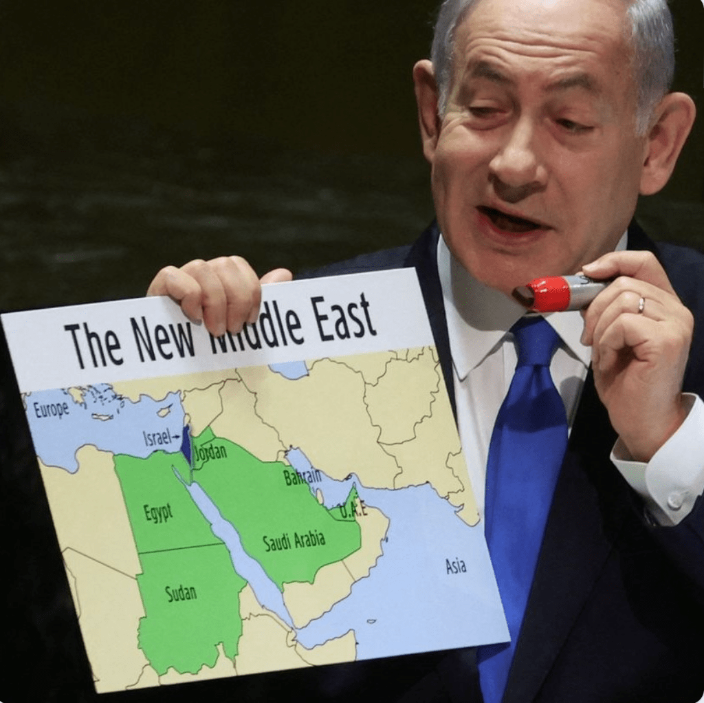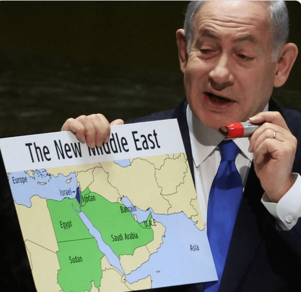 Map of “The New Middle East” Netanyahu Prominently Displayed to Address General Assembly Sept. 22, 2023/ Spencer Platt/AP