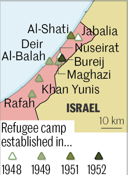 Evan Centanni, Administration of Land October 6, 2023,/reproduced by permission of Political Geography Now. Sources: B’Tselem, UN, Gisha, city population.de